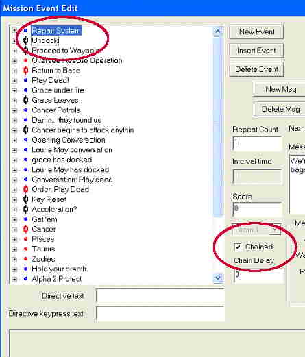 | Steps To Reproduce | Example: I've used again Derelict "Playing Possum" Dl4-05.fs (you can find it in mantis 1004) + I've rigth-clicked over "Repair System" (the very first event). + Select "Edit data" or just press Esc. + Then left-click over any other event, for example the next one "Undock" which is chained to it. + You can see how even when "Undock" is the selected item (example: the Chained Tick is marked), "Repair System" keeps resalted. I upload a screenshot. | ||||