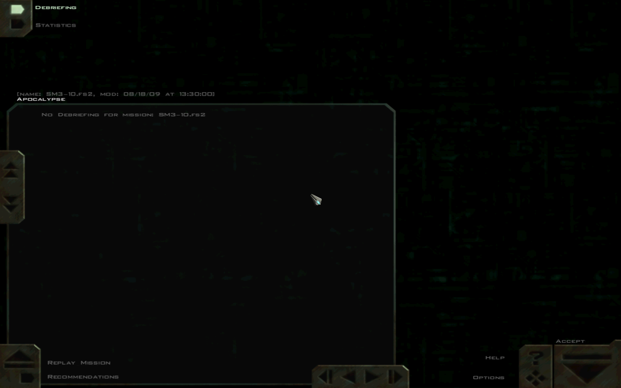| Summary | 0002478: "No Debriefing for mission: SM3-10.fs2" screen and ending cutscenes will not play if player reaches jump node successfully | ||||