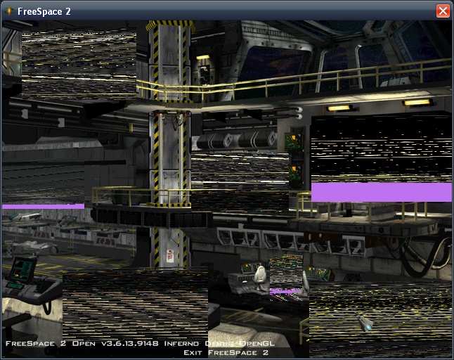 | Description | This definitely happens in RC8, and may happen in some trunk builds after RC7. Mainhall animations initially load up normal, but when they are activated they become highly corrupted (see photo). Additionally, after some time putzing about the mainhall, FSO will lockup and CTD, if lucky. Similarly, if returning from the mission, FSO will also lockup. | ||||