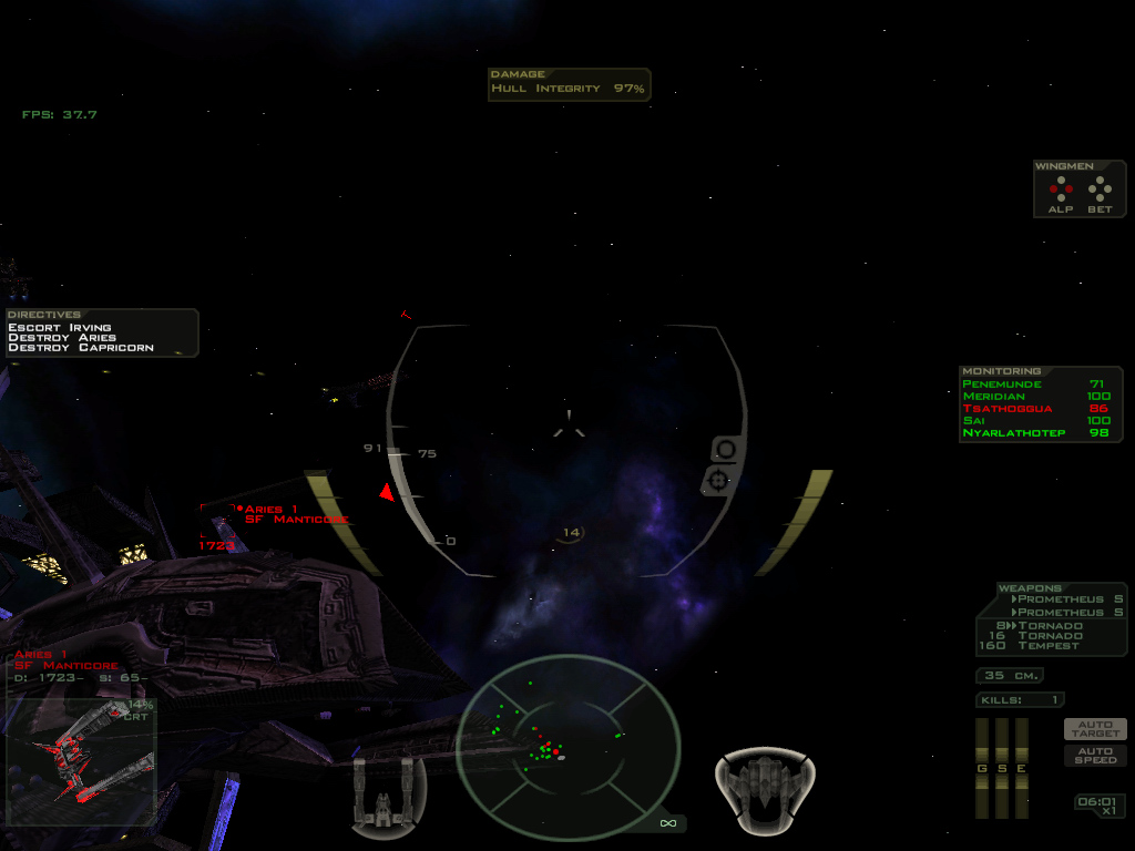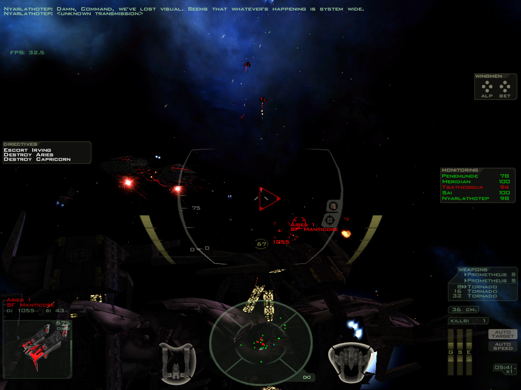 | Additional Information | I wasn't able to find any trigger to this blinking. If I find it I will update this post. My command line C:\FreeSpace2\fs2_open_r.exe -mod MOD_Derelict,MOD_LightSpeed,mediavps -spec -glow -jpgtga -mipmap -nomotiondebris -2d_poof -noscalevid -cache_bitmaps -dualscanlines -targetinfo -rearm_timer -ballistic_gauge -ship_choice_3d -3dwarp -warp_flash -alpha_env -fps -ambient_factor 60 I'm using media 3.6.8. zeta plus Taylor's alpha patches. I use all adveffects but animated glowmaps and high quality beams. I use OGL in 1024 x 768 x 32 with Trilinear and 8x AF. | ||||